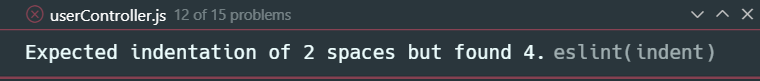 expected indentation of 2 spaces but found 4. eslint(indent) ๋ผ๋ ์ค๋ฅ๊ฐ ๋ฐ์ํด์