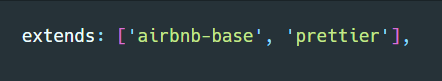 ๊ทธ๋ฆฌ๊ณ .eslintrc.* ํ์ผ์ extends ์์ญ array ๊ฐ ๋ง์ง๋ง์ "prettier" ์ ์ถ๊ฐํ๋ค.